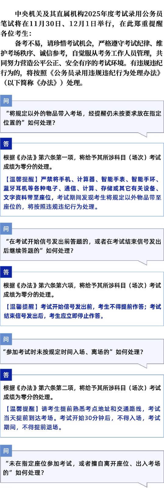 中央機(jī)關(guān)及其直屬機(jī)構(gòu)2025年度考試錄用公務(wù)員筆試 有關(guān)違規(guī)違紀(jì)行為溫馨提醒